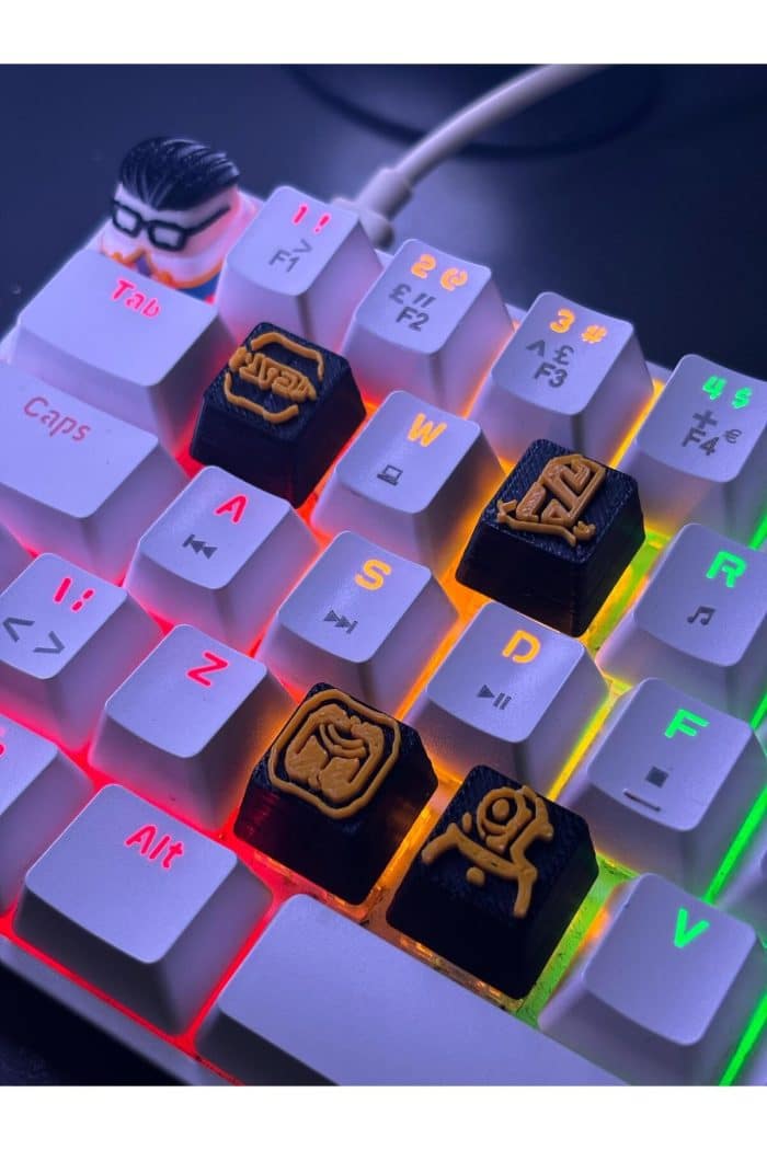 Q klavye düzeni ile standart Türkçe karakterlere kolay erişim sağlar, oyun sırasında hızlı ve doğru yazım imkanı sunar.; ; Yüksek kaliteli malzemesi sayesinde her tuş basışında net ve tatmin edici bir yazım deneyimi sunar, uzun süreli kullanımlarda konfor sağlar.; ; Dayanıklı yapısı ile aşınmalara karşı dirençlidir, yazılar zamanla silinmez.; ; Oyun odaklı tasarımı sayesinde hem estetik hem de işlevsellik sunar.; ; Cherry MX ve benzeri switchlerle uyumlu yapıdadır, çoğu mekanik klavyeyle sorunsuz çalışır.; ; Hafif ve ergonomik tasarımıyla konforlu bir kullanım sağlar.; ; İthalatçı garantisi altında olan bu keycaps seti, 2 yıl boyunca üretim hatalarına karşı koruma sağlar.; ; Chamber temalı tasarımıyla altın tonlar ve zarif detaylar ön plandadır, karakterin sofistike tarzını klavyenize taşır.; ; Bu ürün, Chamber karakterine özel tasarlanmış 5 adet tuş içerir; görsellerde yer alan diğer tuşlar teşhir amaçlıdır.