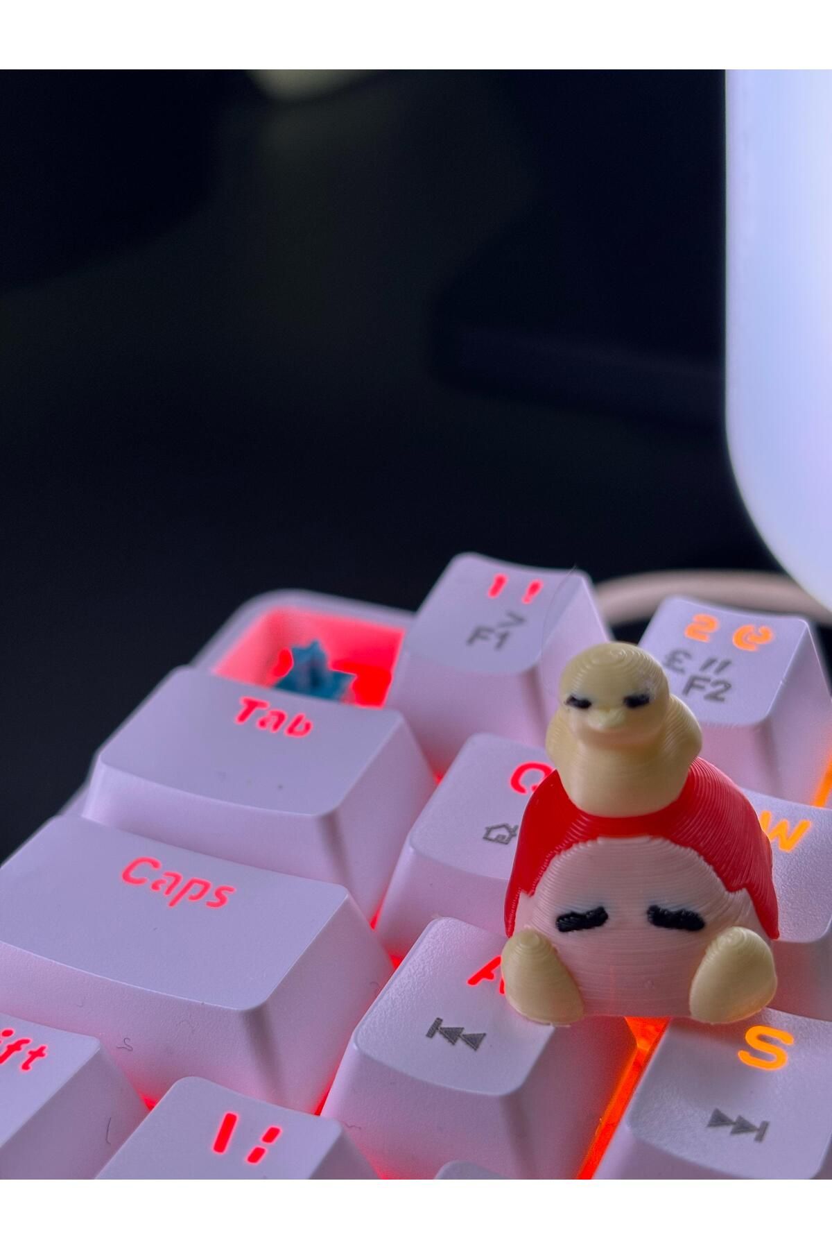 Kirby nin dünyasından fırlamış gibi duran bu özel tasarım keycap, Waddle Deeve minik dostuyla klavyene neşe katacak.; Hem tatlı hem de komik görünüşüyle dikkat çeker, oyuncu setup ına canlılık getirir.; Özellikler: Waddle Dee Temalı Tasarım Cherry MX ve uyumlu switch lerle birebir uyum PLA Malzeme çevre dostu RGB ışıklarla uyumlu şeffaf alt yapı Setup ına karakter katar, koleksiyonluk parça